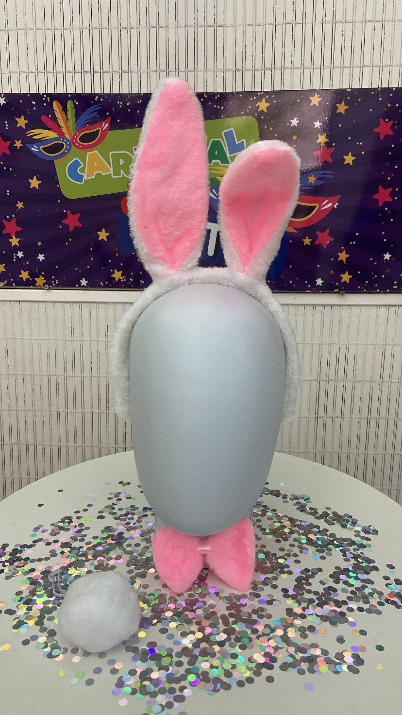 Transforme qualquer momento em uma celebração divertida com o nosso Kit Coelho! Este adorável conjunto é perfeito para fantasias